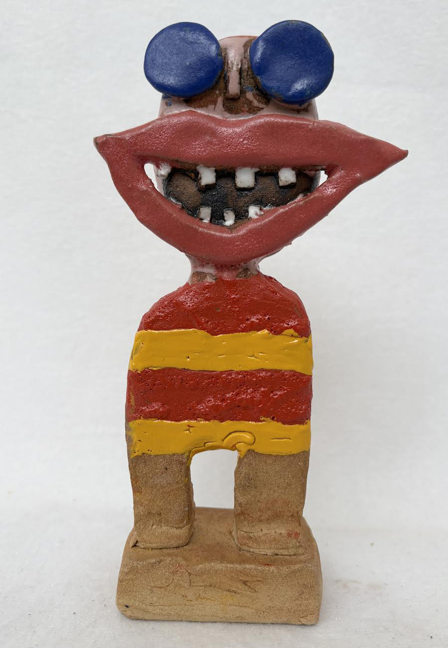 Grinedreng med blå briller, skulptur, H.22 cm