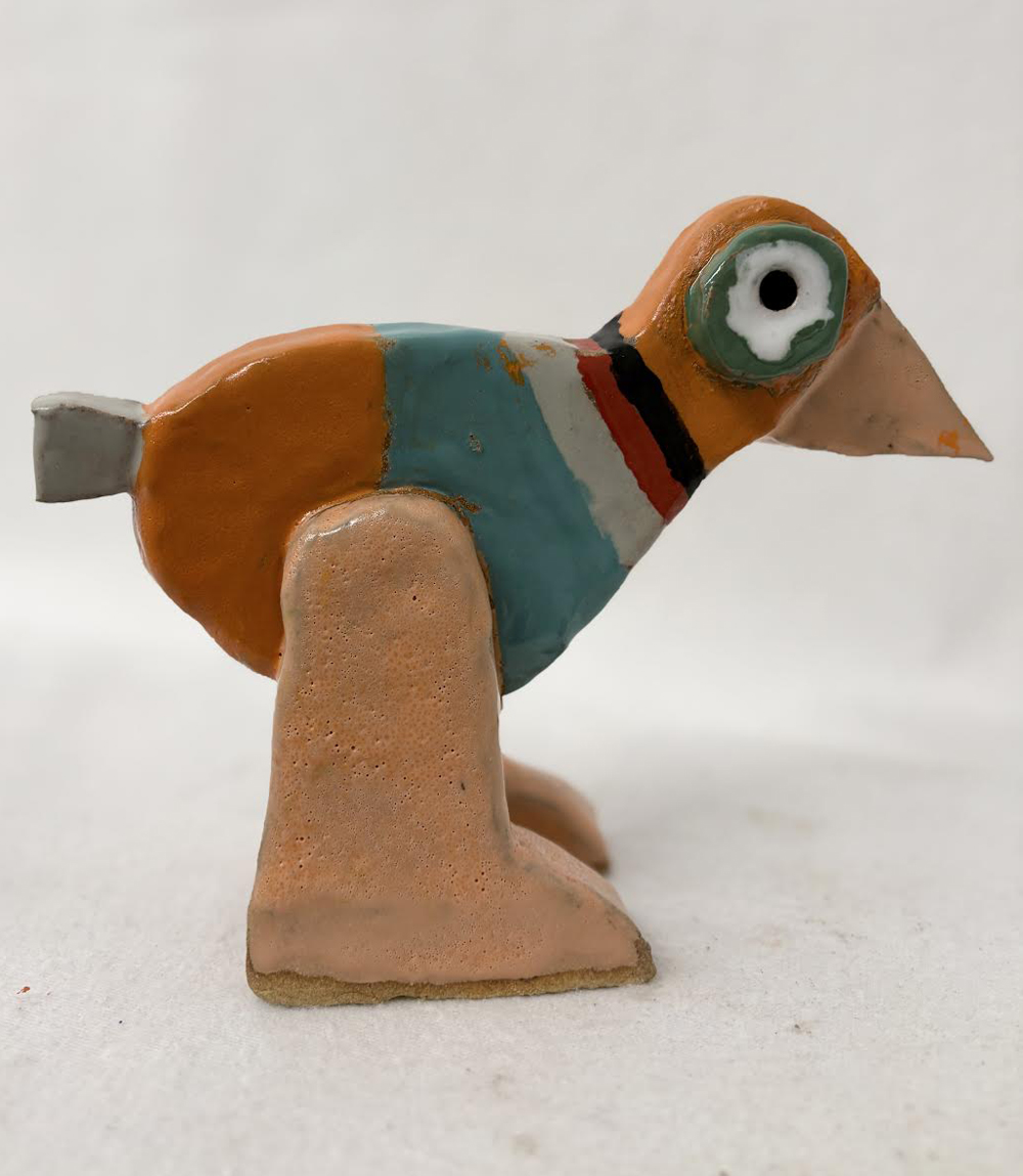 Fugl med lyserøde ben, skulptur, ca. 16x22 cm