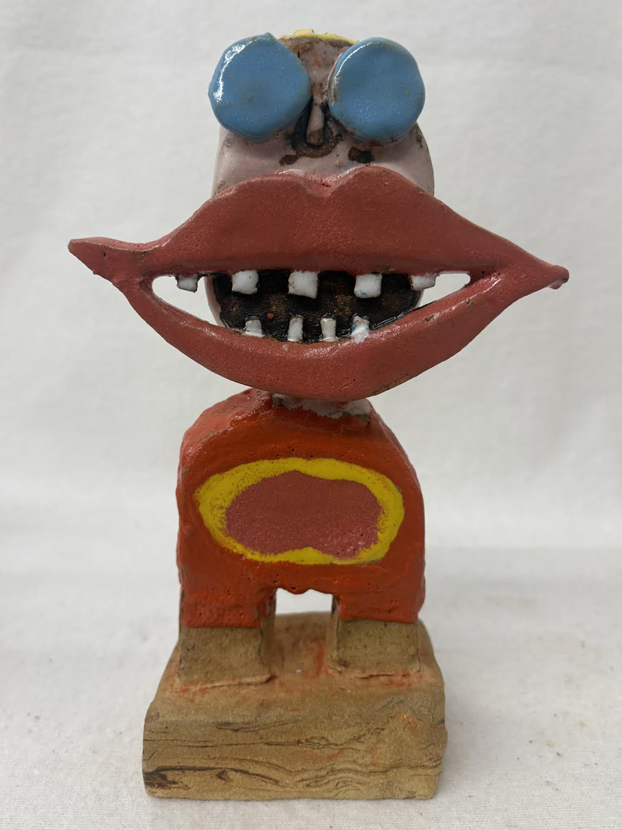 Grinedreng med gul mavering, skulptur, ca. 23 cm