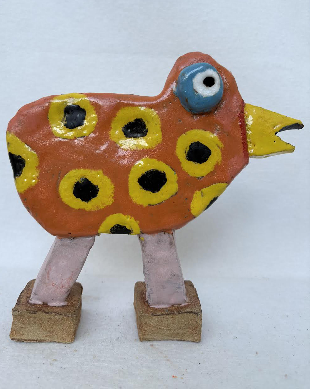 Fugleløber med gult næb, skulptur, ca. 22x23x5 cm