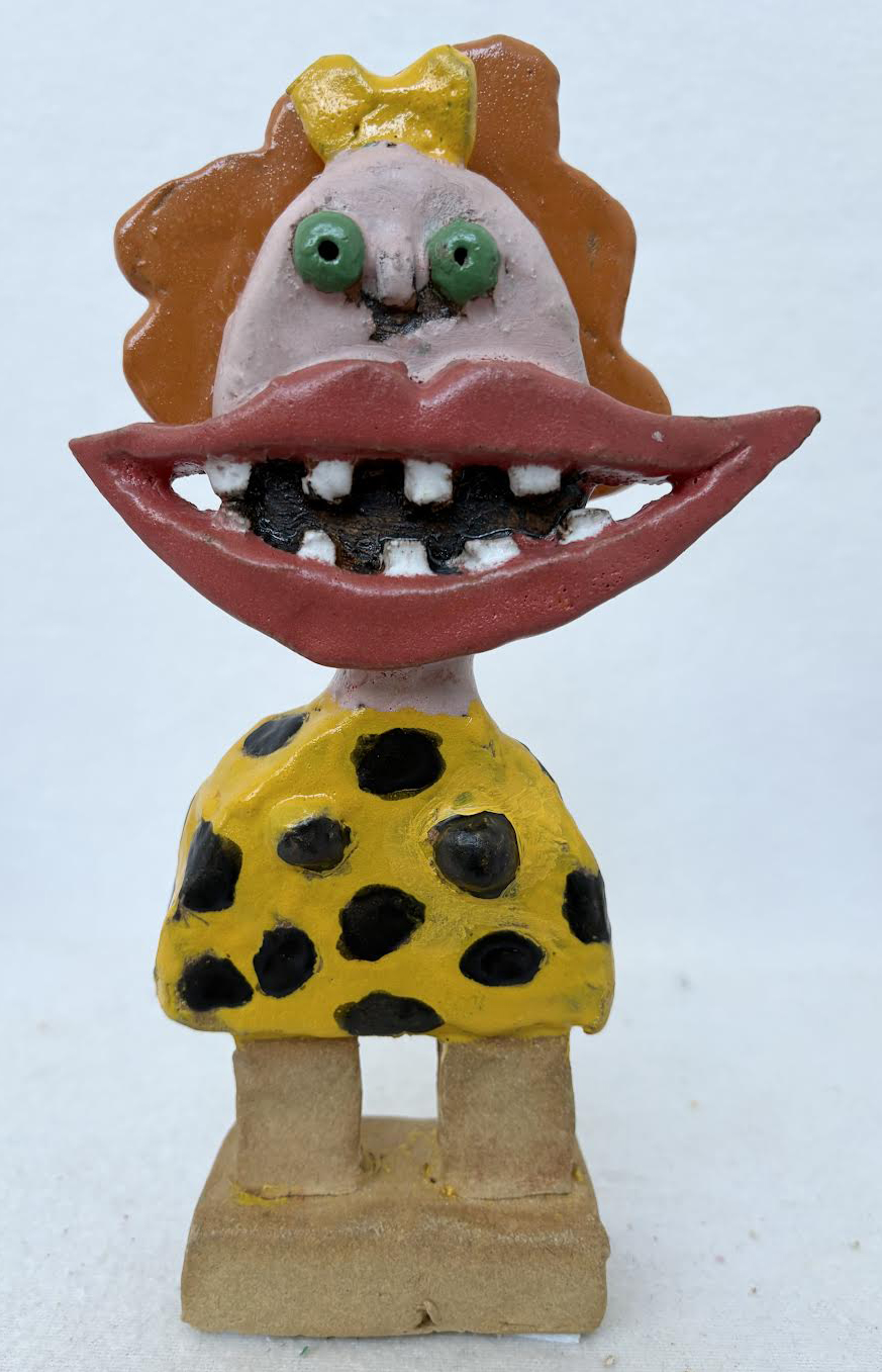 Grinepige med sorte prikker, skulptur, ca. 22 cm