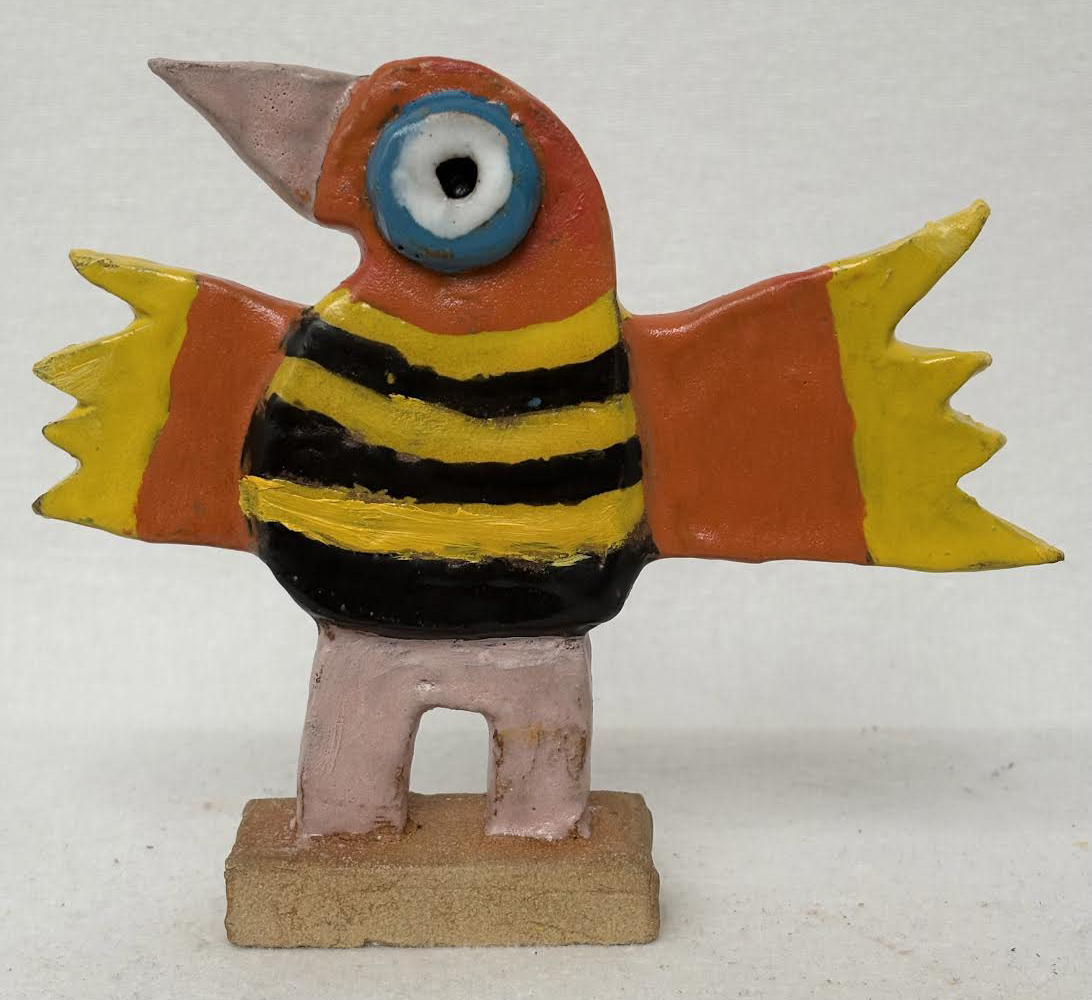 Sortstribet vingesus, skulptur, ca. 16x18 cm