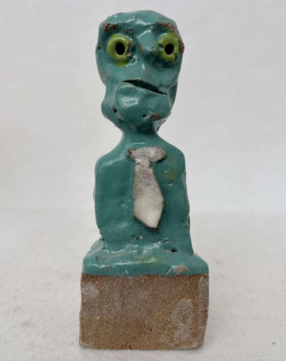 Grøn mand med slips, skulptur, ca. 16 cm